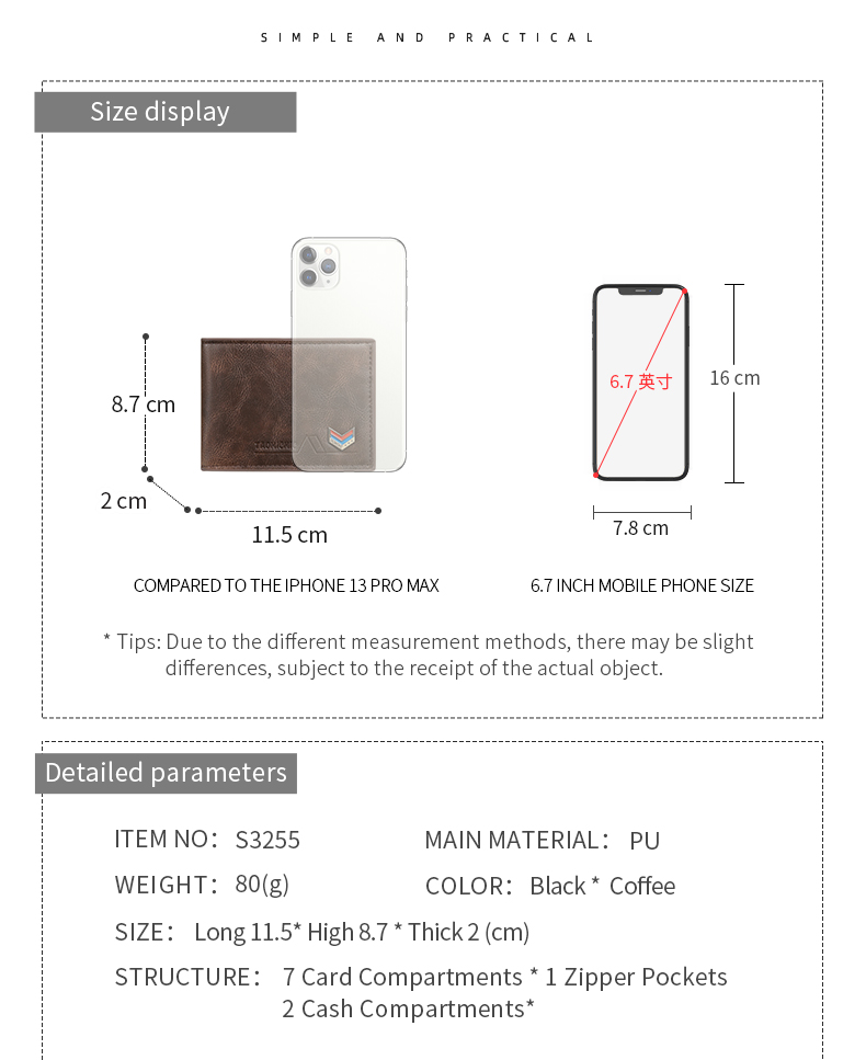 | Item Name | S3255 | Item No. | TAOMICMIC Men Pu Leather Wallet Purse Biflod Card Holder for Gift (S3255) |