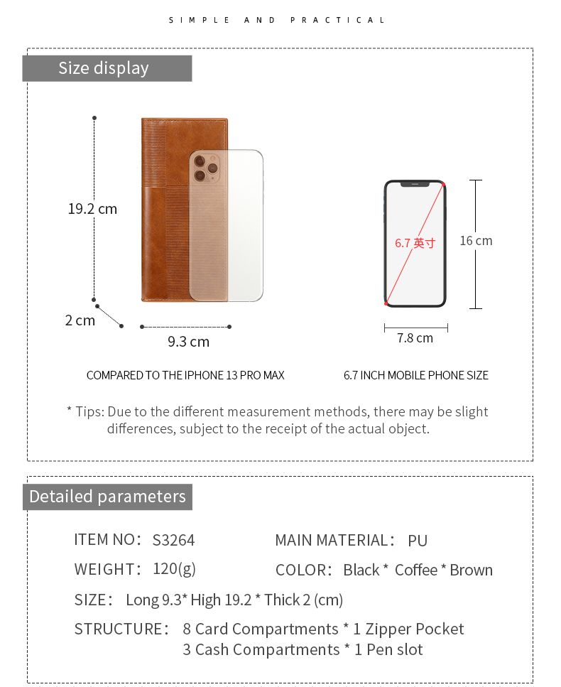 | Item Name | S3264 | Item No. | TAOMICMIC Men Pu Leather Long Wallet Purse Silm Card Holder for Gift (S3264) |
