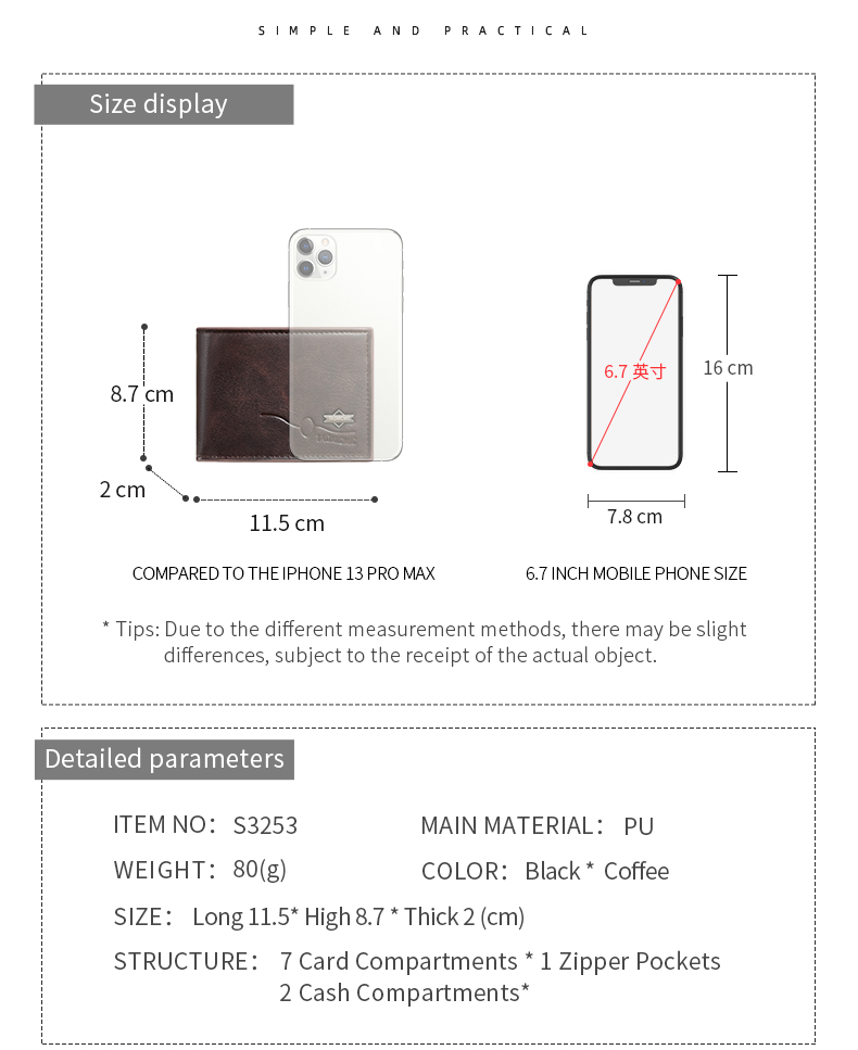 | Item Name | S3251 | Item No. | TAOMICMIC Men Pu Leather Short Wallet Purse Slim Card Holder for Gift (S3251) |