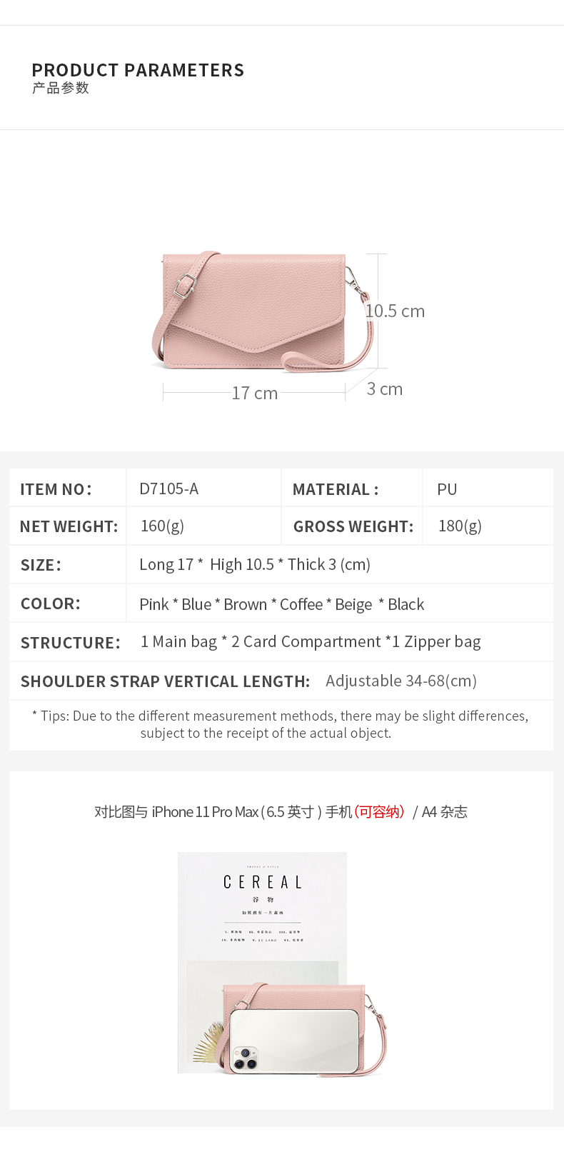 | Item Name | D7105-A | Item No. | TAOMICMIC Women’s Pu Leather Crossbody Shoulder Bag Cabinet Pocket for Daily Use(D7105-A) |